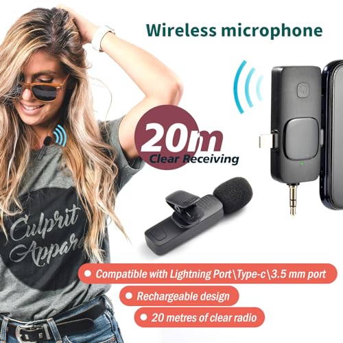 This vlogging kit for iphone includes a wireless microphone with a three-plug receiver that is directly compatible with iphones, android phones and cameras, while the receiver can be connected to a monitoring headset for real-time monitoring of the reception. The microphone is plug and play, the transmitter and receiver are automatically paired when the power is turned on, and the recording can be paused by lightly pressing the button on the transmitter.